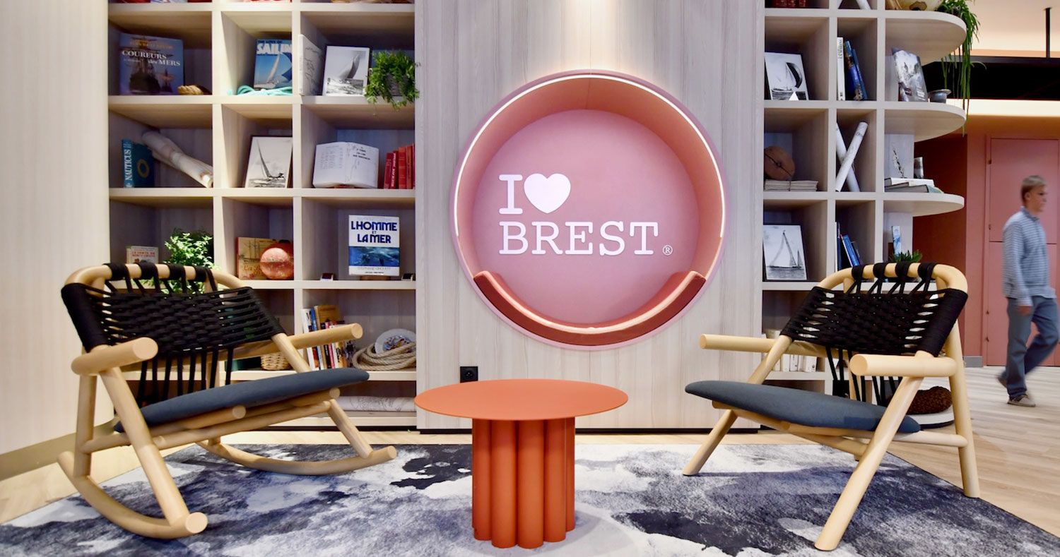 Large hall espace de vie, couleurs chatoyantes… Assis sur de confortables fauteuils, on écoute Brest, son histoire.